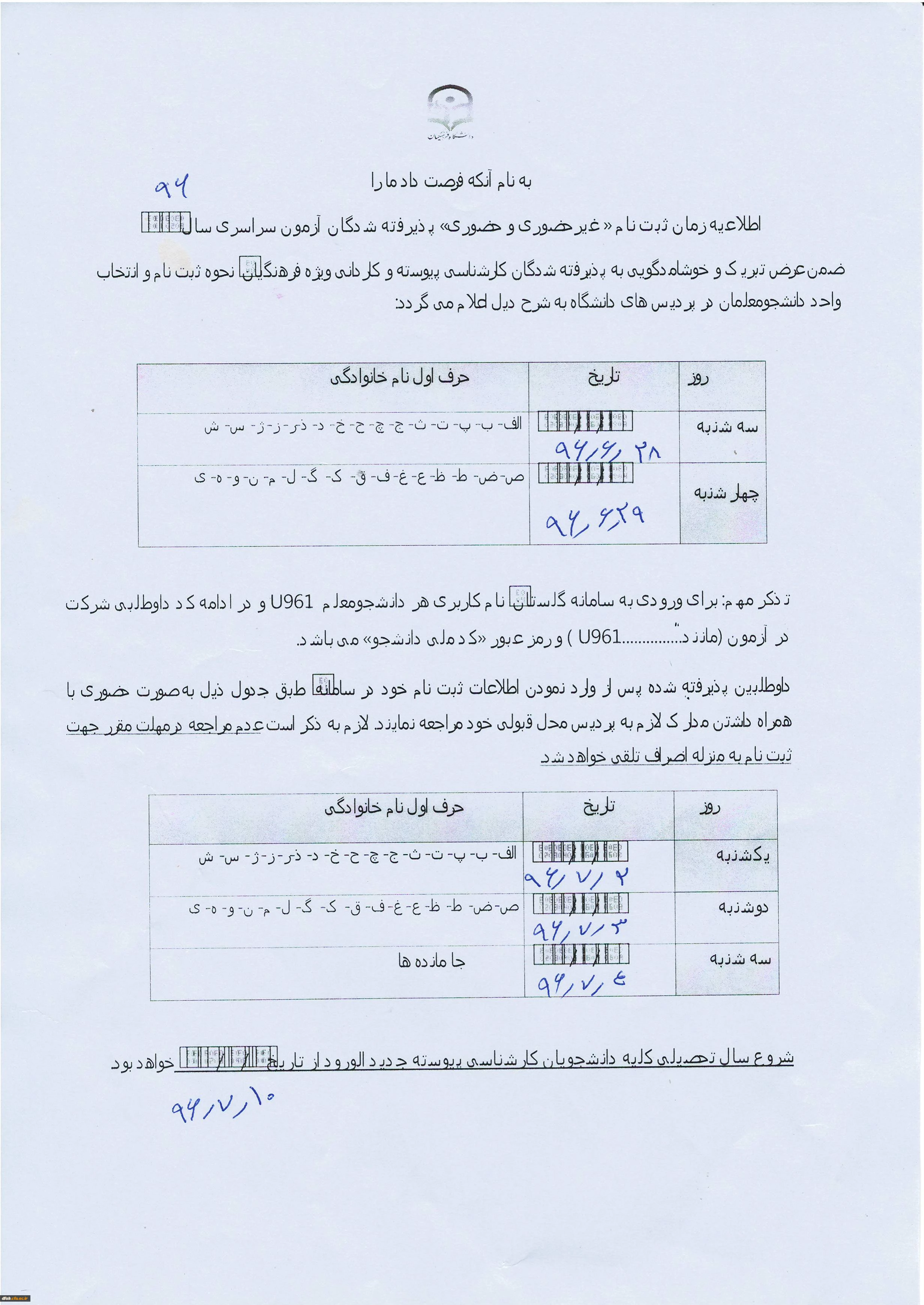 امتیاز دهید : زمان ثبت نام غیر حضوری و حضوری ، پذیرقته شدگان آزمون سراسری سال 96 دوشنبه 27 شهریور 1396 ساعت 8:40
