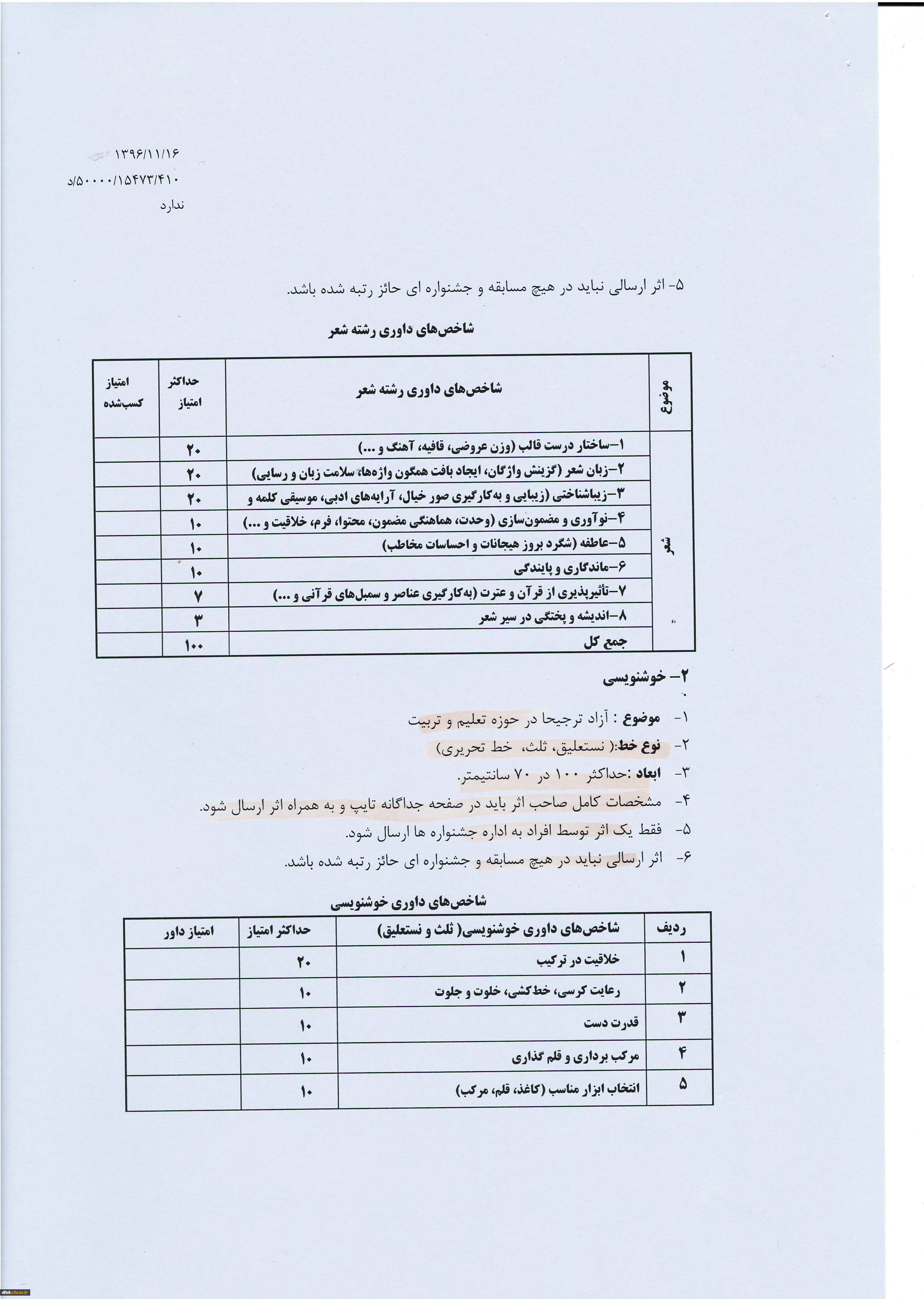 دستورالعمل دومین جشنواره فرهنگی واجتماعی اساتید وکارکنان
