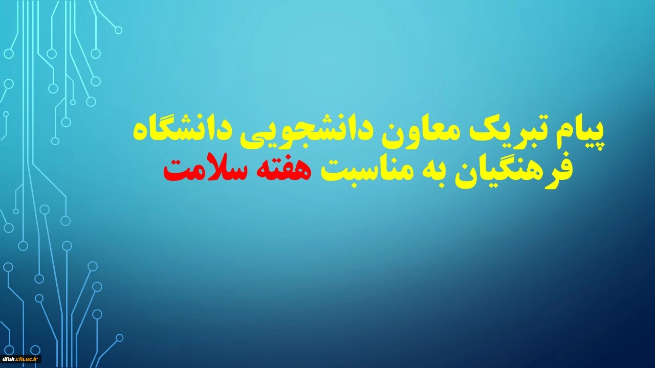 امتیاز دهید : پیام تبریک معاون دانشجویی دانشگاه فرهنگیان به مناسبت هفته سلامت سهشنبه 4 اردیبهشت 1397 ساعت 13:50