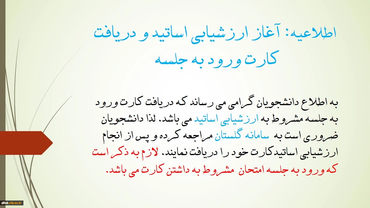 امتیاز دهید : اطلاعیه: آغاز ارزشیابی اساتید و دریافت کارت ورود به جلسه چهارشنبه 12 دی 1397 ساعت 10:46