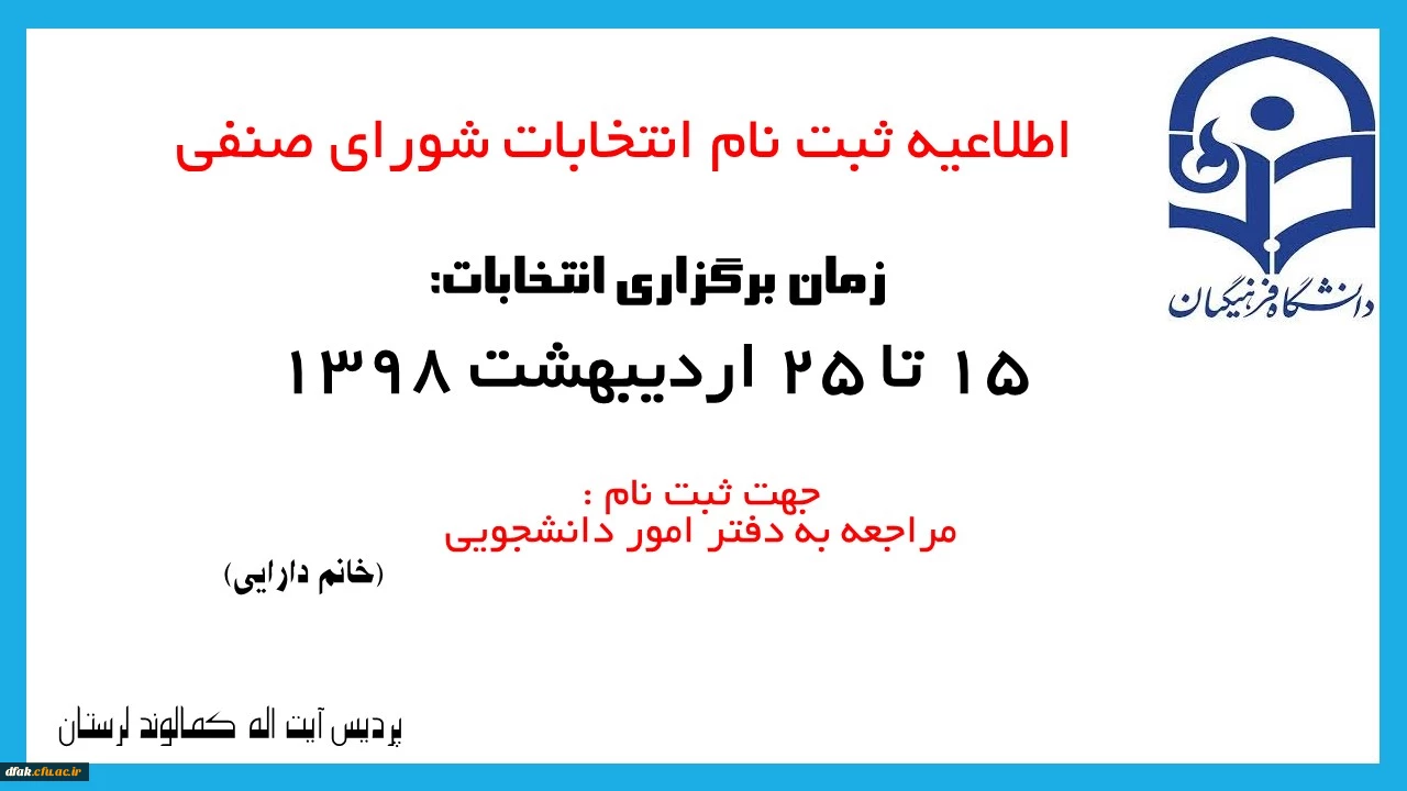اطلاعیه ثبت نام انتخابات شورای صنفی پردیس
