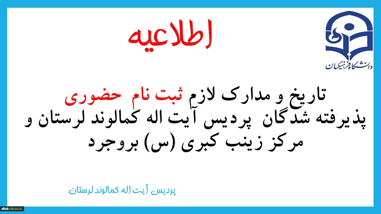 تاریخ مدارک لازم جهت ثبت نام حضوری