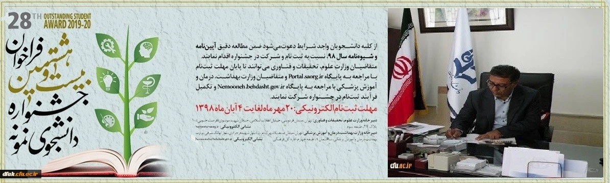 امتیاز دهید : آغاز فراخوان بیست و هشتمین جشنواره دانشجوی نمونه از 20 مهرماه لغایت 4 آبان 1398 چهارشنبه 24 مهر 1398 ساعت 14:33