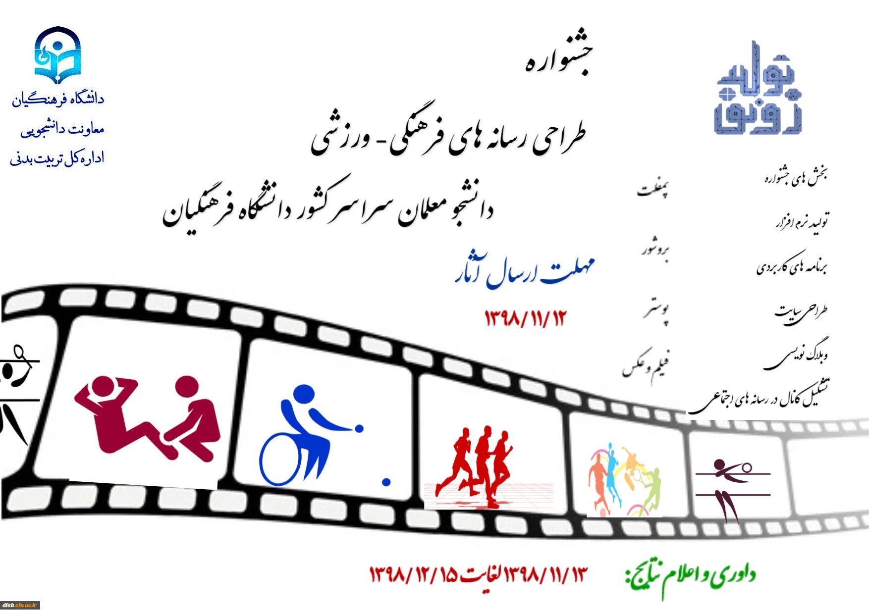 امتیاز دهید : جشنواره طراحی رسانه های فرهنگی – ورزشی دانشجو معلمان سراسر کشور دانشگاه فرهنگیان سهشنبه 26 آذر 1398 ساعت 9:10