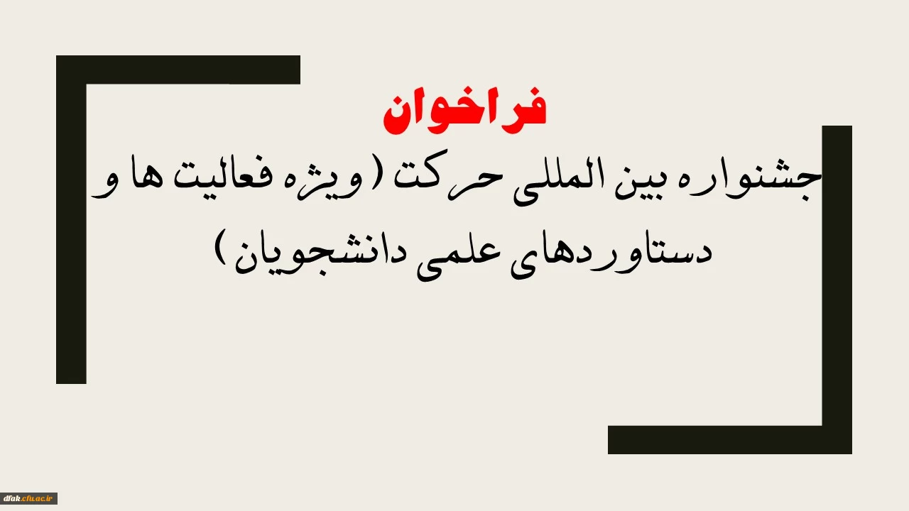 امتیاز دهید : فراخوان جشنواره بین المللی حرکت (ویژه فعالیت ها و دستاوردهای علمی دانشجویان) سهشنبه 26 آذر 1398 ساعت 14:13