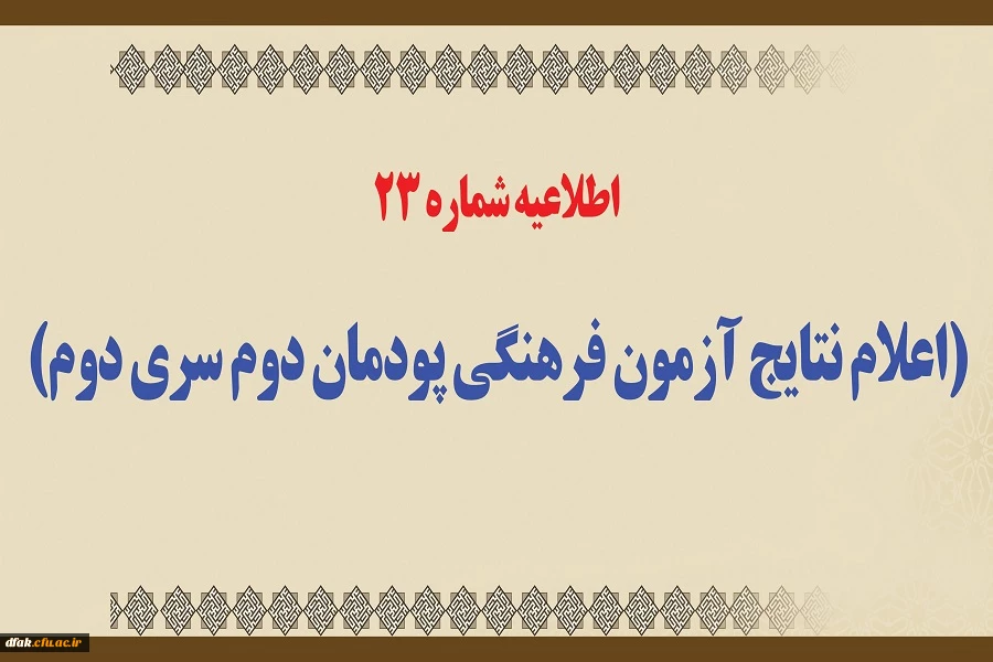 امتیاز دهید : اطلاعیه شماره 23 (اعلام نتایج آزمون فرهنگی پودمان دوم سری دوم) 2 یکشنبه 7 شهریور 1400 ساعت 13:36