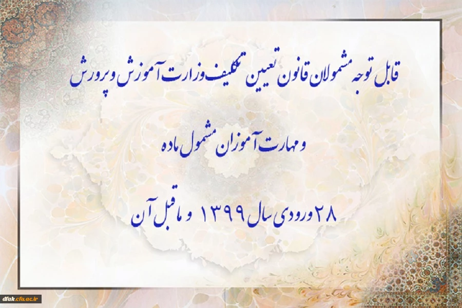 قابل توجه مشمولان قانون تعیین تکلیف وزارت آموزش و پرورش سری سوم و مهارت آموزان مشمول ماده ٢٨ ورودی سال ١٣٩٩ و ماقبل آن 2