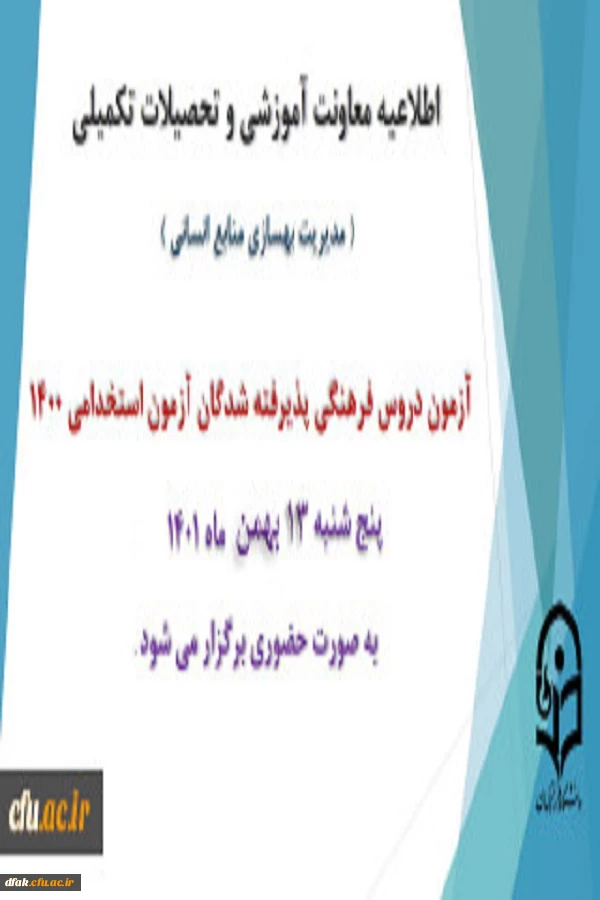 امتیاز دهید : اطلاعیه معاونت آموزش و تحصیلات تکمیلی دانشگاه ( مدیریت بهسازی و منابع انسانی ) 2 دوشنبه 10 بهمن 1401 ساعت 14:19